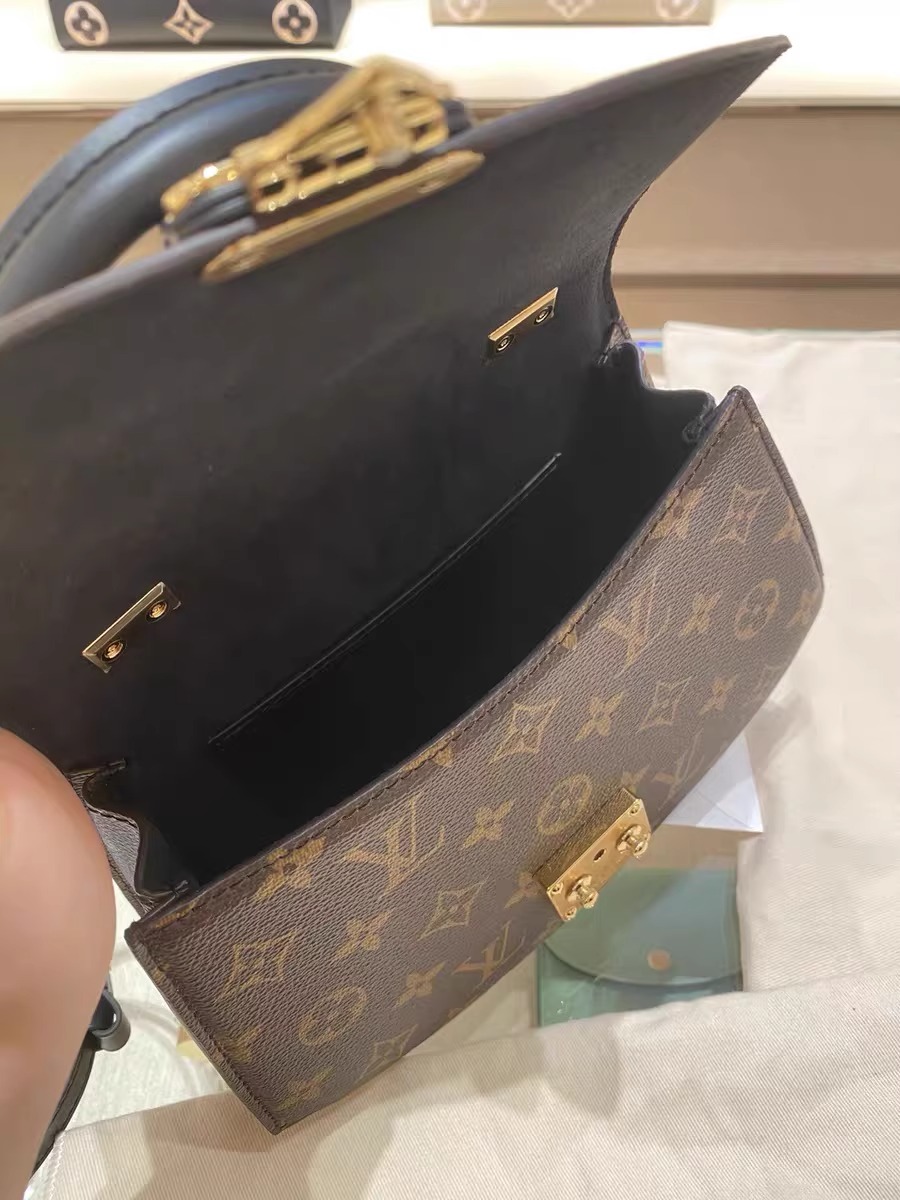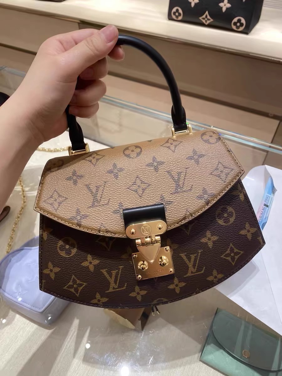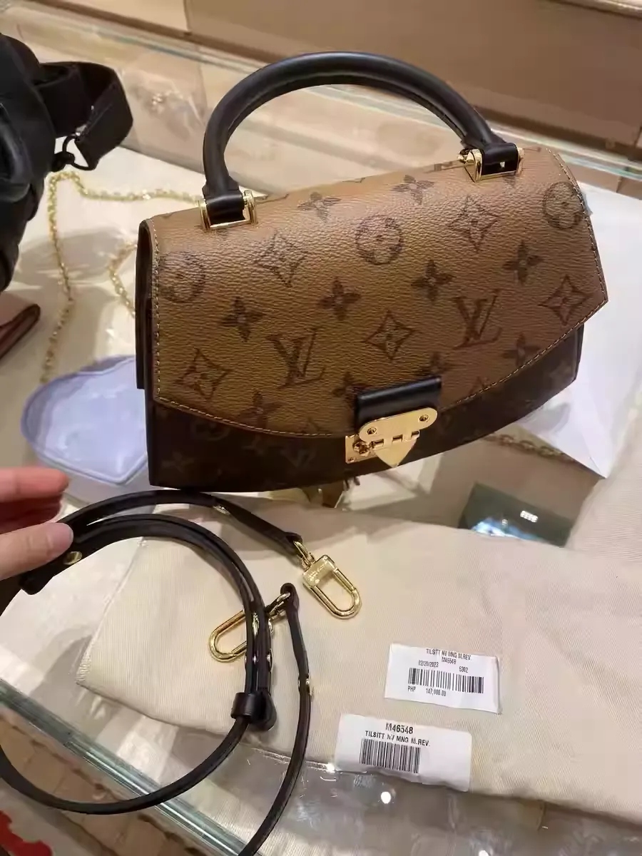 モノグラム & モノグラム・リバース キャンバスを組み合わせたシティバッグ「ティルシット」。1988年に登場したメゾンのモデルから着想を得た幾何学的かつカーブを描くフォルムで、一目でそれと分かるデザインに仕上げました。スマートなストラップとトップハンドルを備えた、実用性に優れた新モデルです。メゾンを象徴するSロックスタイルの留め具が、フラップに彩りを添えます。
