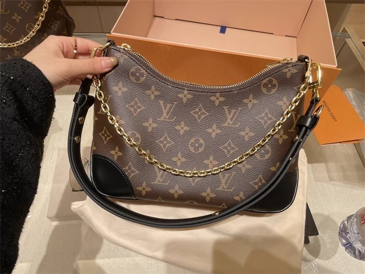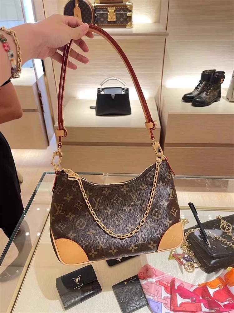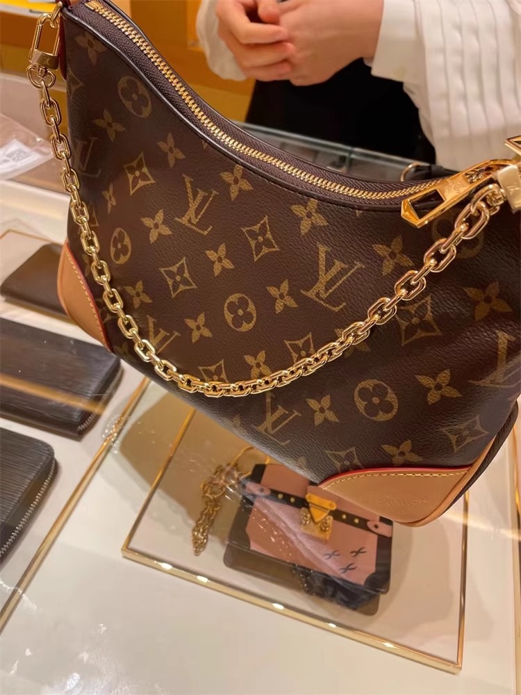 定番のモノグラム・キャンバスを使用した多用途なバッグ「ブーローニュ」。取外し可能なストラップで、クロスボディバッグやロング & ショートショルダーバッグとして楽しめます。ストラップを取外せば小ぶりなチェーンバッグや、フォーマルなシーンにぴったりのクラッチバッグにも。開口部はダブルファスナースタイルに仕上げ、内装にはスマートフォンが入る大きさのフラットポケットをあしらいました。