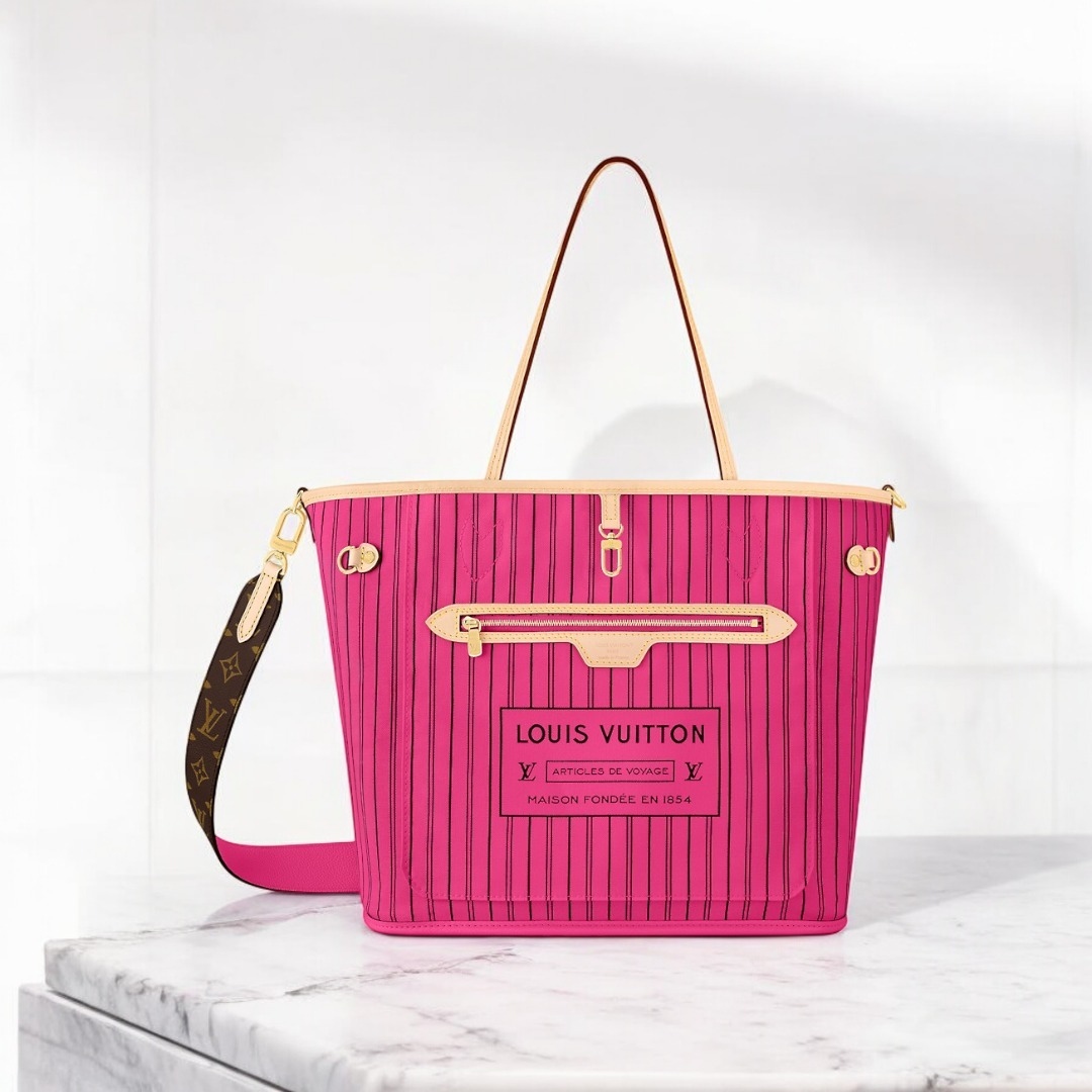 アイコニックなアイテムを新たなリバーシブルデザインに仕上げた「ネヴァーフル・インサイドアウト MM」。タイムレスに楽しめる一品です。モノグラム・キャンバスとストライプのパターンをあしらった鮮やかな色合いのテキスタイルを使用。クロスボディバッグにもできる取外し可能なストラップも魅力です。サイドフックを使えばホーボースタイルにアレンジできます。