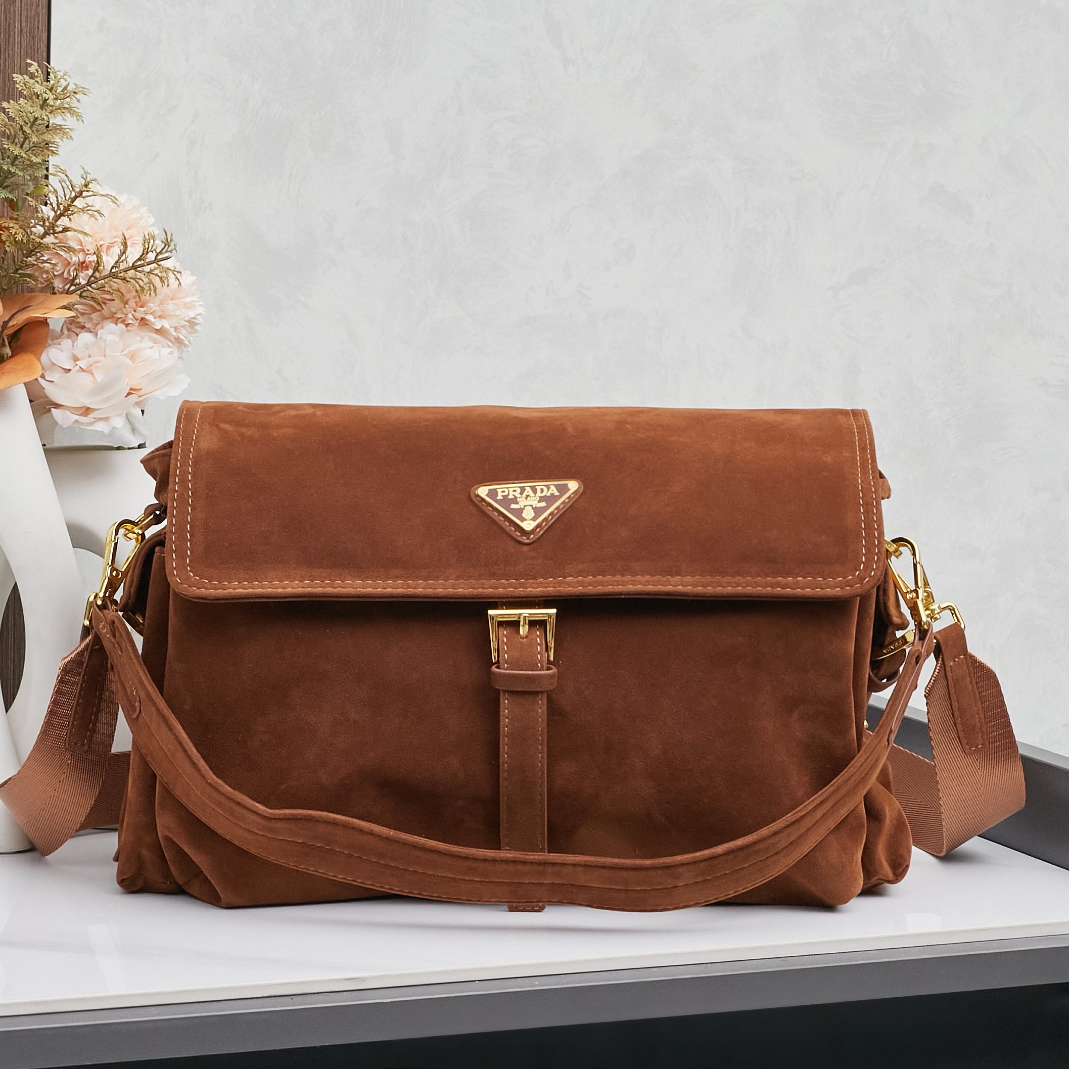 PRADA(プラダ) スエード 肩掛け バッグ 28x22x11cm