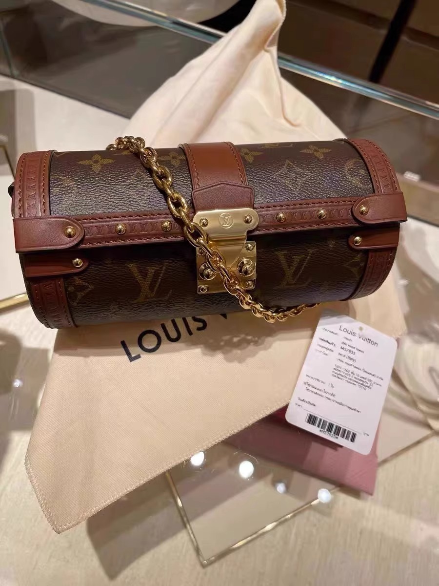 ルイ・ヴィトンのアーカイヴから着想を得てニコラ・ジェスキエールがフェミニン & カジュアルな新しいフォルムでアップデートした「パピヨントランク」。アイコニックなダッフルバッグ「パピヨン」を、トレンドにマッチした構築的でジオメトリカルなシルエットに仕上げました。Sロックスタイルの留め具やエンボス加工で施したLV イニシャルが並ぶトリミング、スタッズが、メゾンが誇るトランク製造の歴史にオマージュを捧げています。